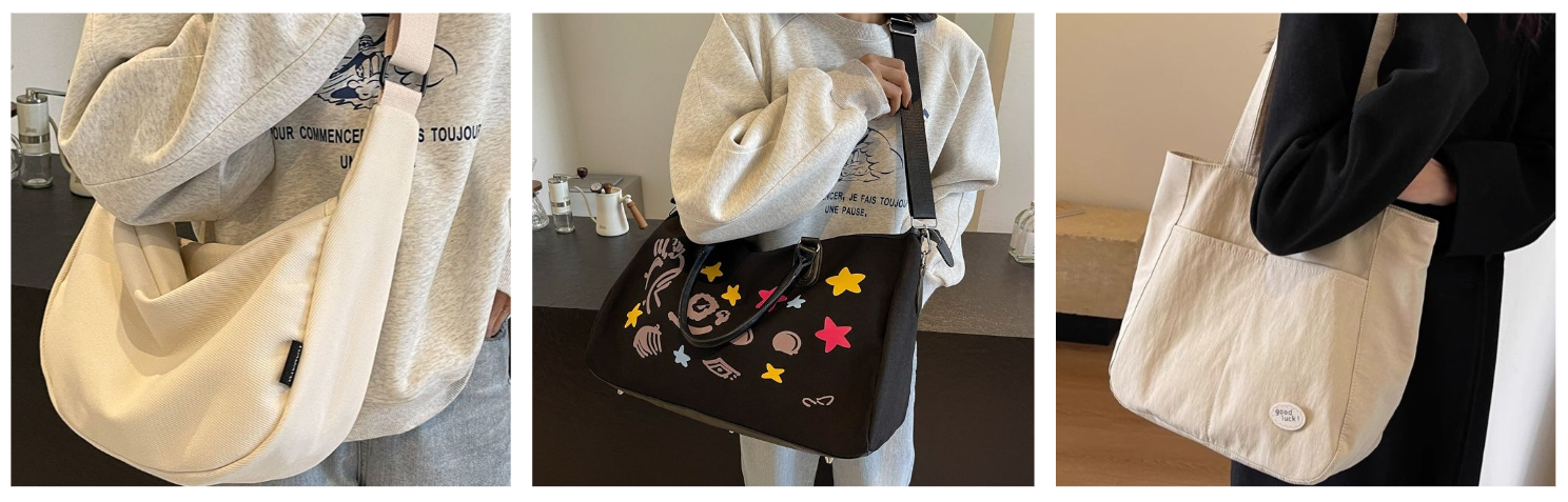肩掛けスタイルで持ちやすく、キャンバス素材の軽量性により長時間の使用でも疲れにくい設計となっています。