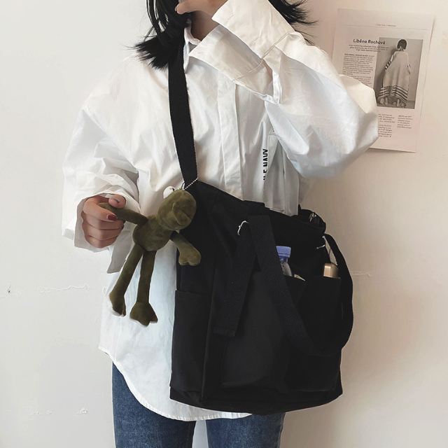 手提げと斜めがけの二つの持ち方ができる便利な設計で、通勤や通学にぴったり。