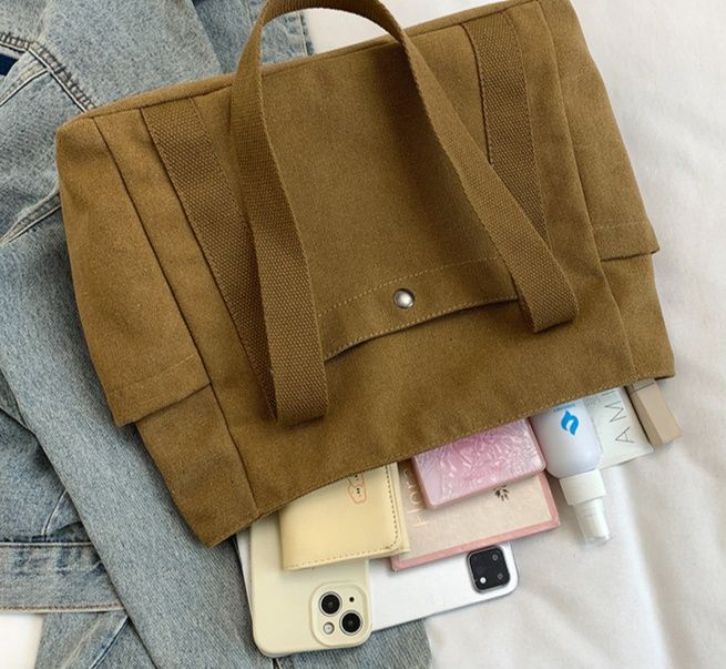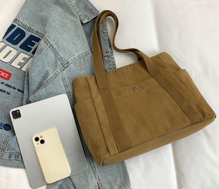 日常使いに最適なキャンバストートのショルダーバッグです。