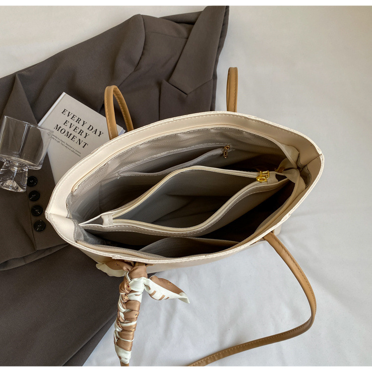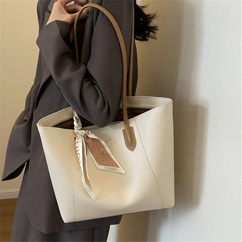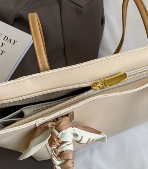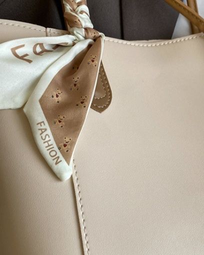 持ち手のスカーフ装飾がアクセントとなり、洗練された印象を演出します。