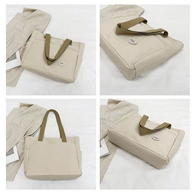 丈夫な布製の持ち手は肩掛けしやすい長さで、通勤通学や普段使いに大活躍します。