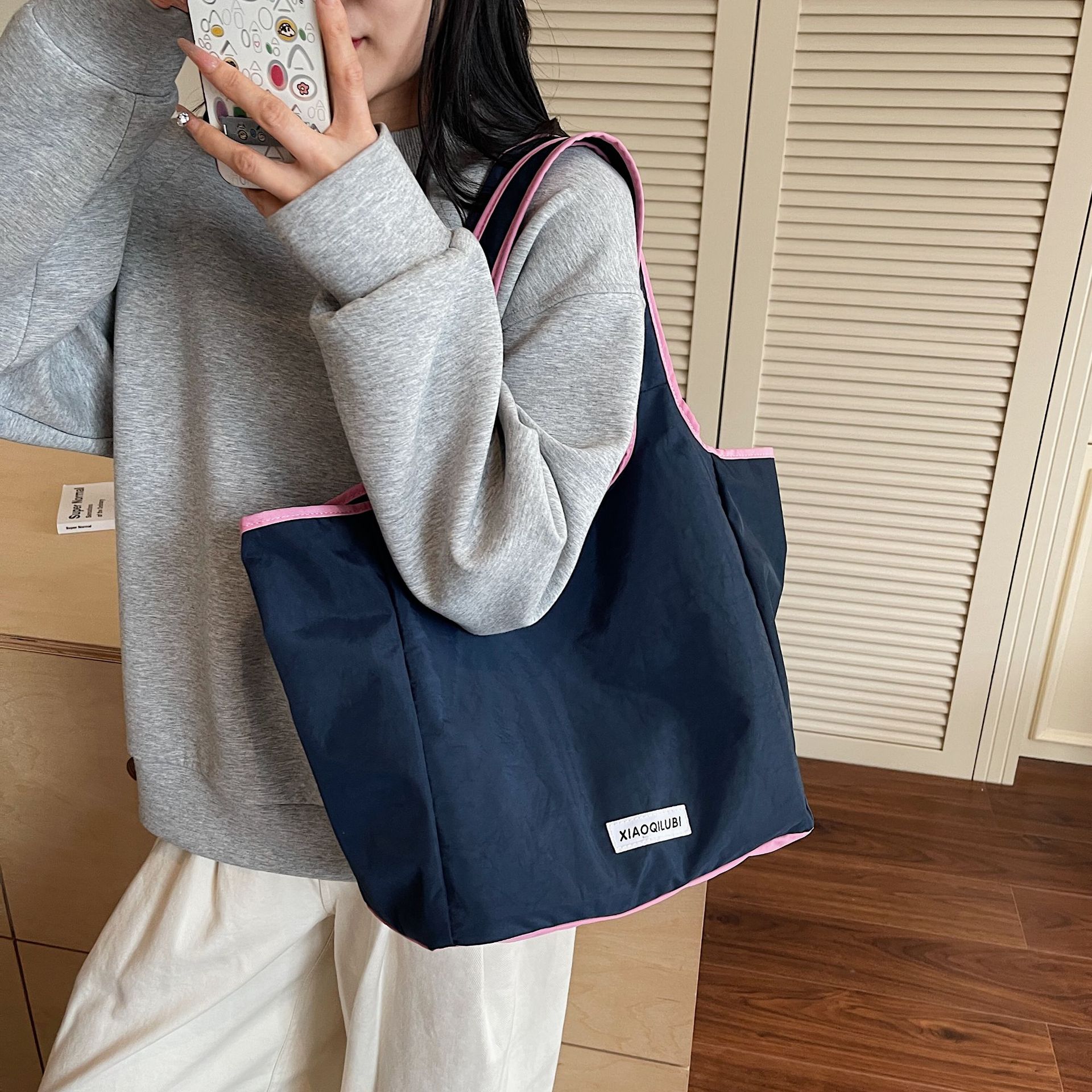 ショルダーストラップは長めに設計されており、肩掛けや斜め掛けなど自由なスタイルで持ち運びが可能です。