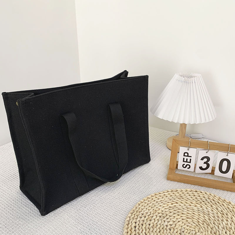 A4サイズの書類や雑誌もすっぽり収まる横長デザインのキャンバストートです。