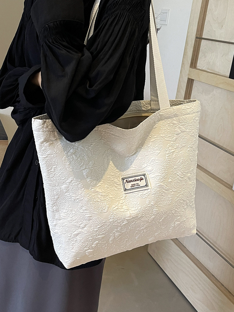 繊細な薔薇の刺繍が全体に施された上品なキャンバストートです。