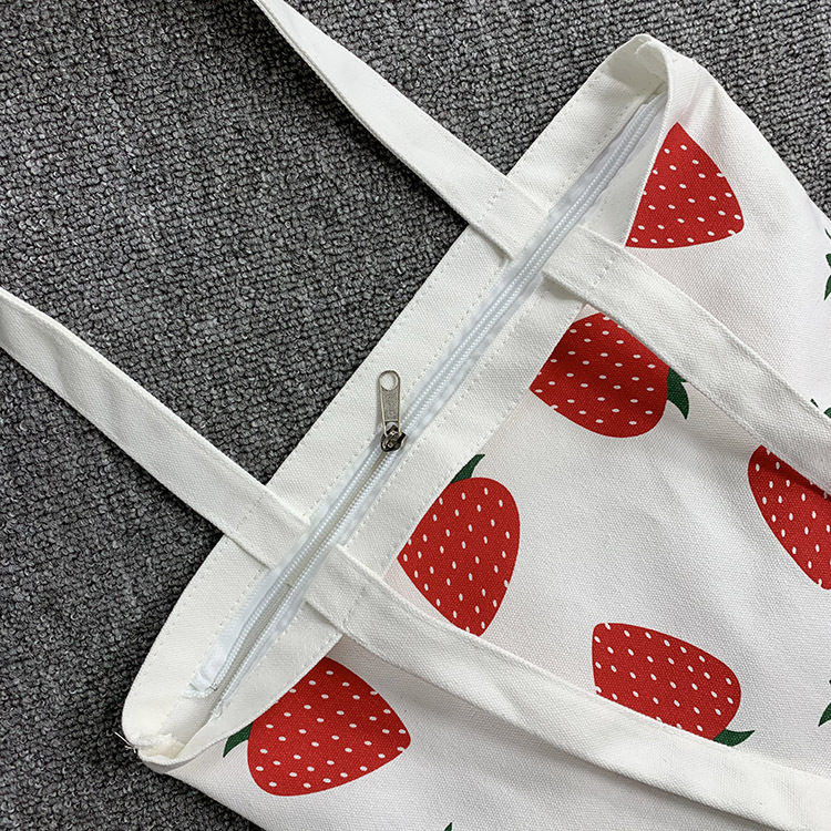 可愛らしいいちご柄が印象的なキャンバストートバッグです。